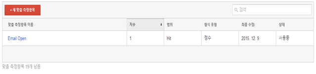 이메일 오픈을 측정하려면, 구글 애널리틱스 속성에 이메일 오픈 맞춤 측정항목을 만든다. 맞춤 측정 항목이 있어야 구글 애널리틱스에서 새로운 지표로 해당 정보를 기록하고, 캠페인, 국가, 장치 유형 등의 다양한 측정 기준에 따라 결과를 나누어 볼 수 있다.