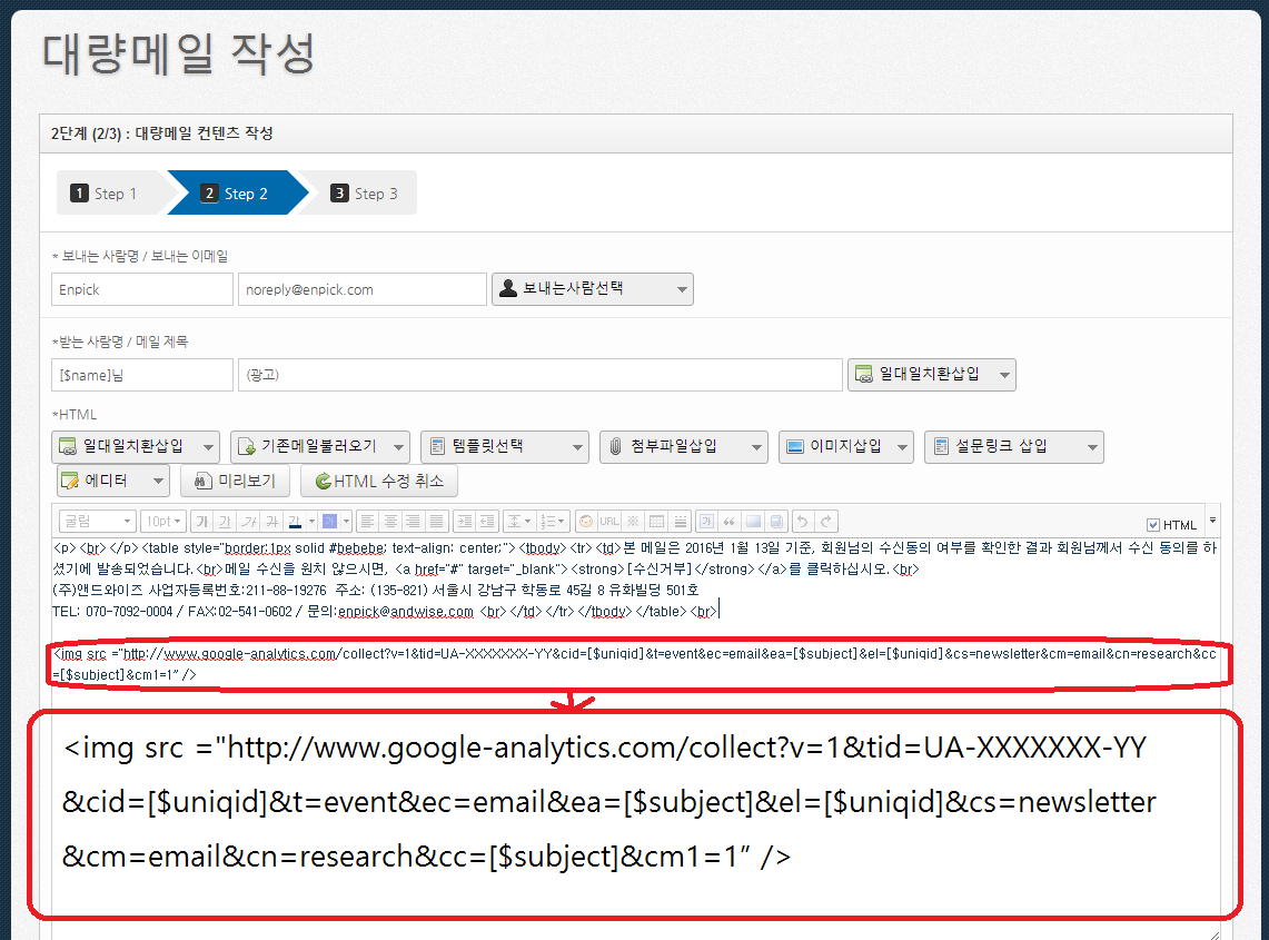3단계. 이메일에 구글 애널리틱스 코드를 추가한다.