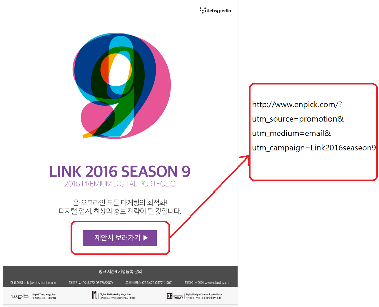 이메일 내용 중 “제안서 보러가기”링크에 구글분석 파라미터