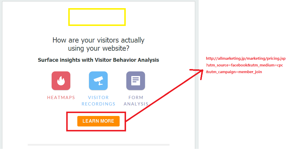 Facebookのポスティングから会員加入を誘導する場合、“会員加入”リンクはパラメターを定義しないとGoogle Analyticsでは分析できない。下記のようなパラメターを追加で定義して分析・測定が行える