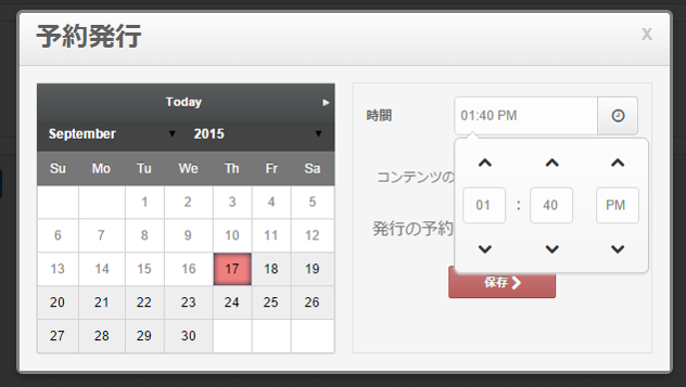 保存をクリックすると、当該予約が保存され、選択した日付と時間にコンテンツが発行されます。